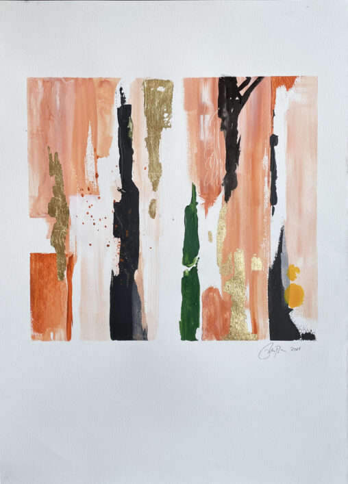 Acrylic and copper leaf on cold press paper Framed – MDF frame (wall & table suitable) 210 x 300 mm Price: 130 Euro [SOLD]