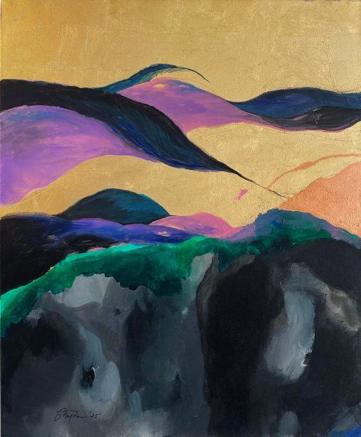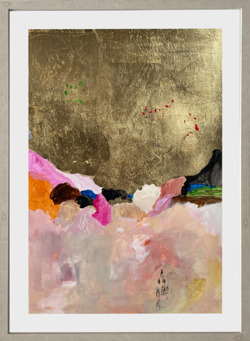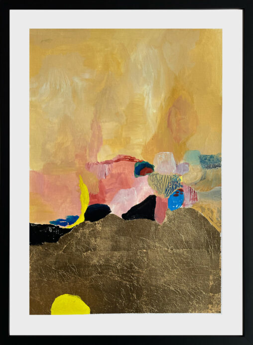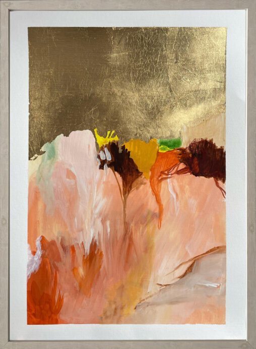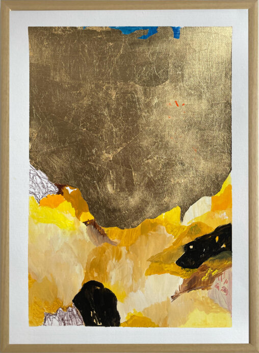 – series Earth & Air – Acrylic, gold leaf, pastel on cold press paper 500 x 700mm Framed – wood frame Price: 400 Euro