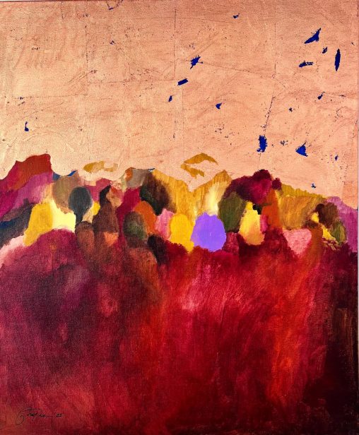 Acrylic, gold and copper leaf, on canvas (pine frame) 508x 609 mm (double thick canvas) Price: 750 Euro